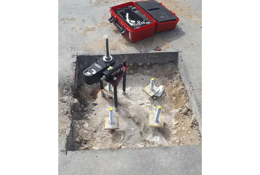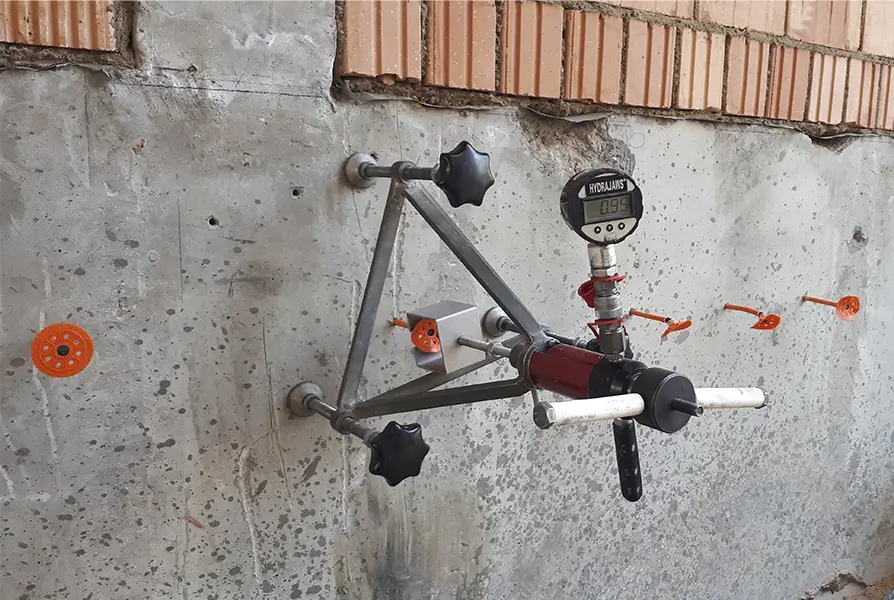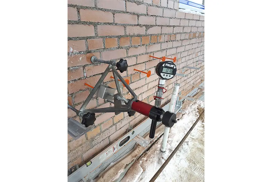 Для уточнения несущей способности анкера применительно к реальному основанию с учетом вида материала основания, его качества, фактической прочности, плотности, влажности и других характеристик, необходимо проводить натурные испытания анкеров на объекте строительства. Суть испытаний заключается в следующем: смонтированный анкер помещают в захват специального прибора и плавно прикладывают к нему нагрузку до извлечения анкера.
