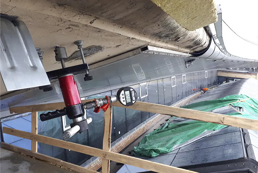 Лаборатория Евротест аккредитована на проведение испытаний анкеров, анкерных устройств дюбелей, и других крепежных элементов на вырыв из подосновы.